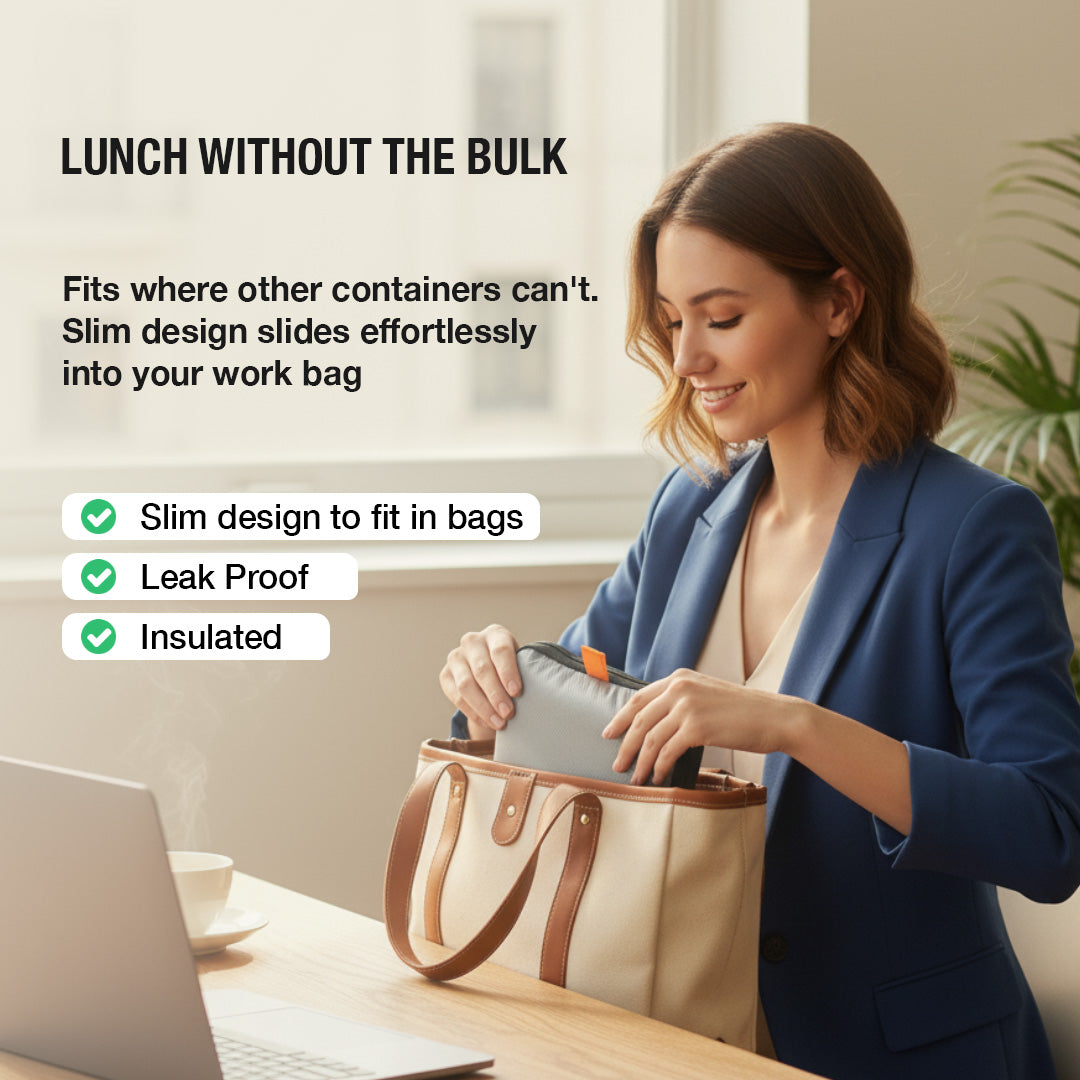 This slim, insulated lunch set keeps your food fresh, your bag clean, and your day effortless.